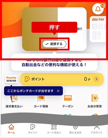 口座開設完了後に、あらためてau PAY アプリより連携手続きを行ってください。